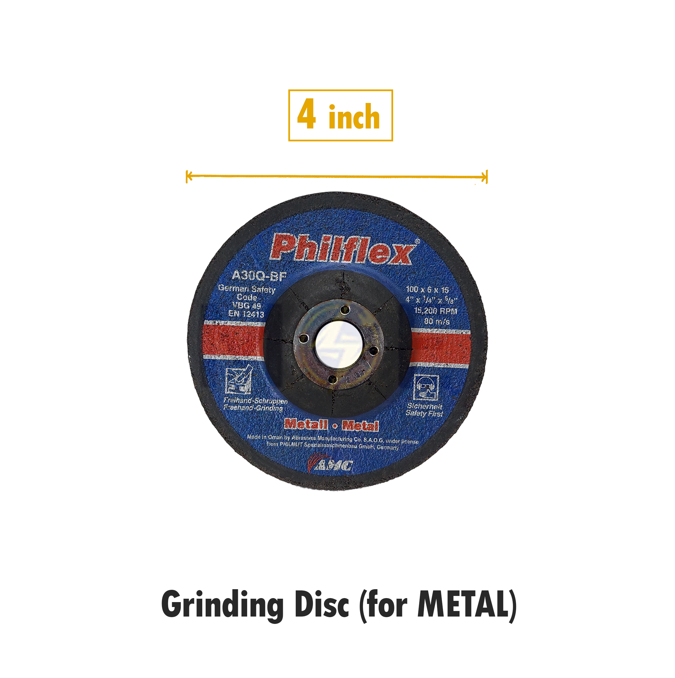 Philflex Abrasive Metal Grinding Disc 100x6x16mm | A30Q-BF